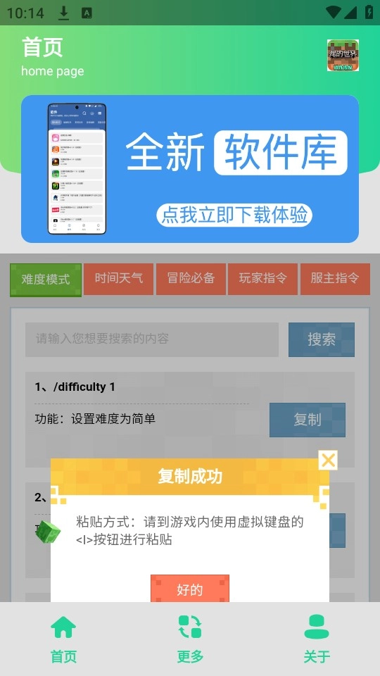软件的使用方法其实很简单,打开首页就能看到指令,接着选择你需要复制的指令就可以了。