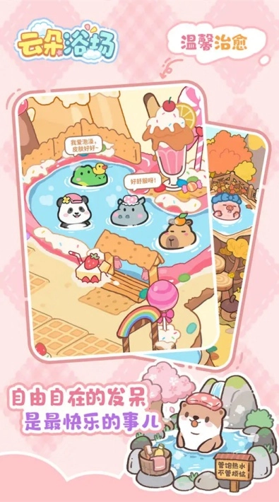 玩家将和表姐联手经营一家云端浴场:表姐主要负责室外的直播宣传工作,借助直播互动来提高浴场的知名度,以此吸引更多顾客;玩家则把精力放在室内运营上,从搭建基础设施着手,一步步完善浴场的各项功能。比如在初期先解锁普通的泡澡池、淋浴间,到了后期可以升级成星空主题泡池、彩虹滑梯泳池这类特色区域。不同的设施能够满足不同顾客的需求,像家庭顾客更偏爱亲子池,年轻顾客则喜欢网红打卡池,这样就能提升消费金额和浴场的口碑。