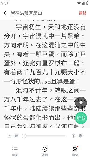 在阅读界面中,轻点屏幕后,听书区域上方的功能选项即为相应功能。