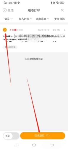 选好要打印的题目后,点击下方的“已选题目”按钮即可。