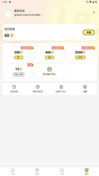 点击下方的“我的”按钮,就能进入个人中心页面,在这里可以查看自身的能量情况,还能进行系统设置等操作。