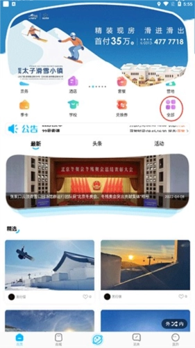 进入云顶滑雪公园,账号登录成功后,进入首页,点击上方的“全部”按钮进入。