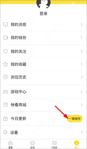 在个人主页里找到“今日更新”板块,点击“一键缓存”按钮就能启动漫画的保存流程啦。