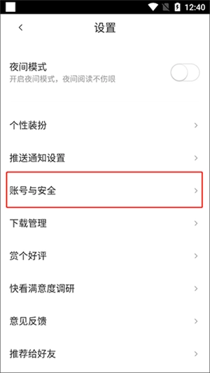 在设置页面选择“账号安全”相关选项。