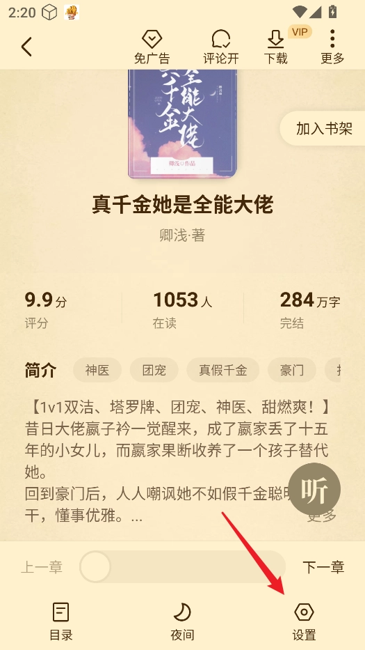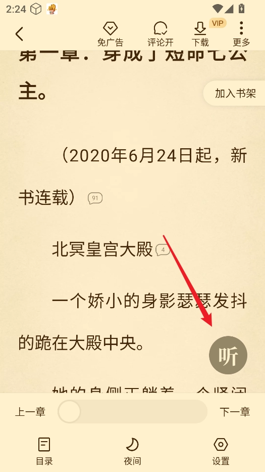 点击屏幕中心呼出菜单栏,右下角点击“听”。