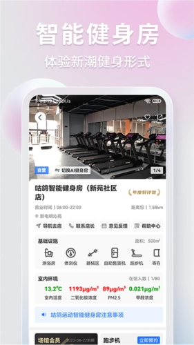 平台收录了海量运动场馆,覆盖多种运动类型。用户可以通过线上一键完成订场、购买单次票或会员卡、预约健身课程等操作。此外,平台还打造了多个社区智能健身房,采用无人化管理模式,通过人脸识别即可入馆。这些健身房环境舒适精致,全程无推销干扰,能让用户享受到沉浸式的健身体验。