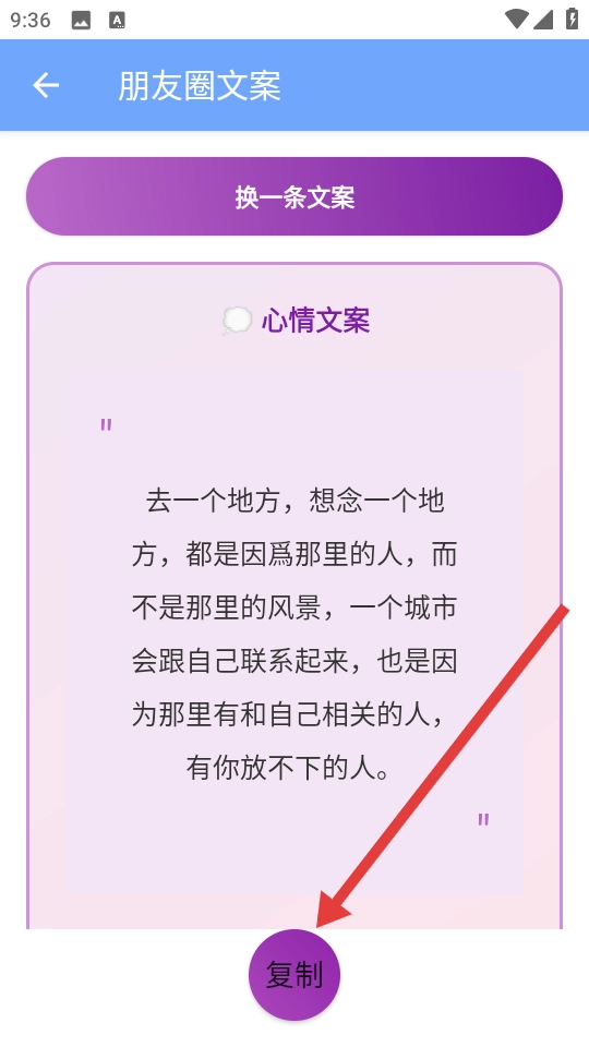 你可以这样浏览系统推荐的文案,从中挑选一条契合当下心情或所处场景的,然后点击“复制”按钮,就能一键把它存到剪贴板里了。