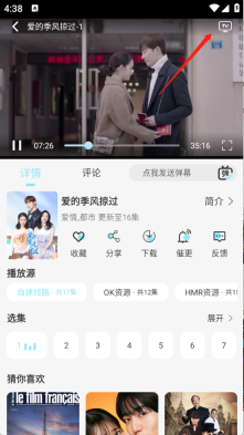 1、打开你想看的影片进入播放界面后,点击右上角的“TV”按钮。