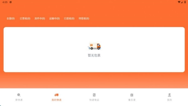 我的快递页面,可以查看签收、派件中的包裹信息。