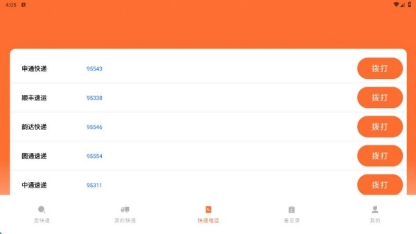 在快递电话页面,能看到多家快递公司的联系方式,方便进行沟通。