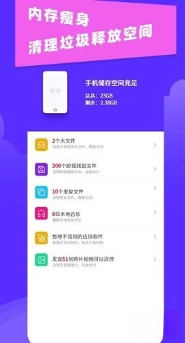 对手机内的各类文件开展全面扫描,清理掉无用的垃圾文件以及重复文件。