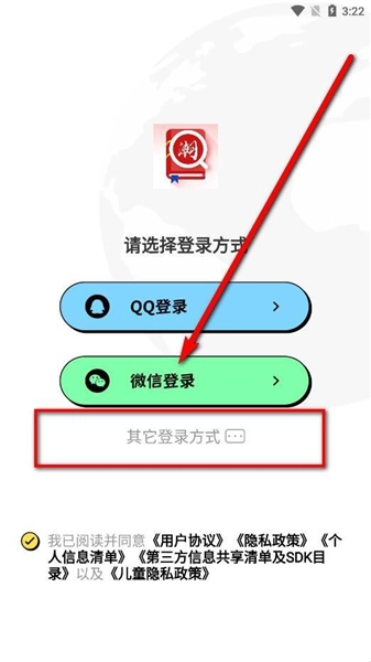 您可以选择QQ或微信登录,也可以点击【其它登录方式】。