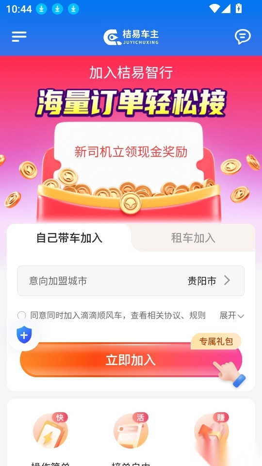 桔易车主主要助力司机用户轻松接单出车,让你快捷接单的同时,更好地保障行车安全,从而轻松高效地出车,获取更多收入;此外,用户还能参与更多奖励活动,实时赢取奖励,轻松提升收入,实现轻松赚钱。