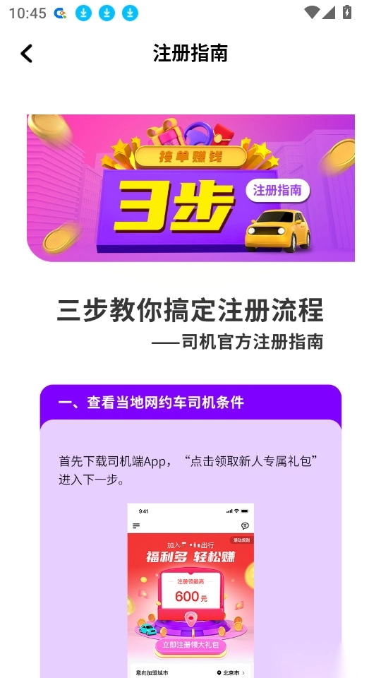 这样就能查看司机端注册指南,了解详细的操作流程。