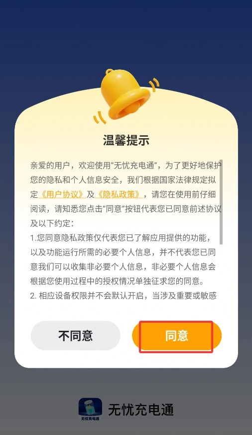 首次启动应用时,需点击同意用户协议弹窗,才能进入主界面开始使用。