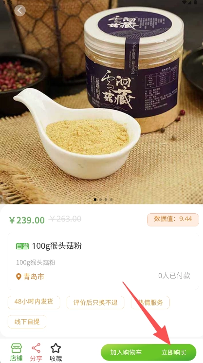 在商品详情页面认真查看价格、规格、发货地等相关信息后,点击“立即购买”按钮。