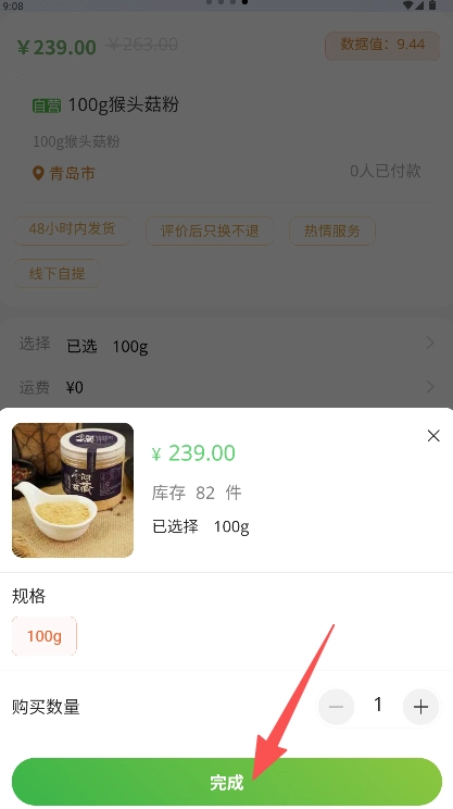在提交订单前,请先核实订单中的所选规格、数量以及总金额是否正确,确认无误后,点击“完成”按钮提交订单。