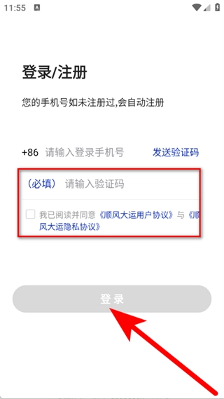在输入验证码并勾选相关协议后,点击登录按钮,即可完成登录操作。