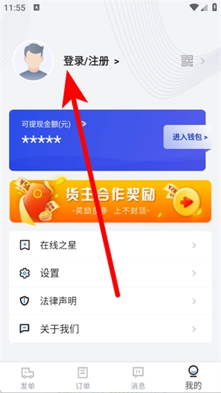 进入首页后,点击底部我的,进入我的页面。