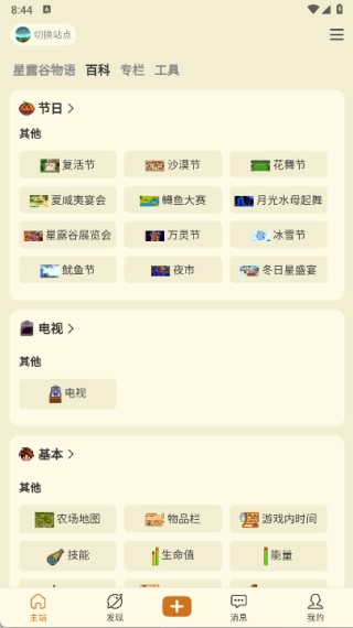 在主站里能了解到星露谷物语百科相关的知识,同时还有百科、专栏和工具这些版块。