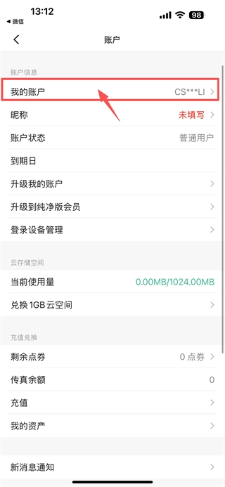 在账户页面,点击“我的账户”选项,即可进入我的账户页面。