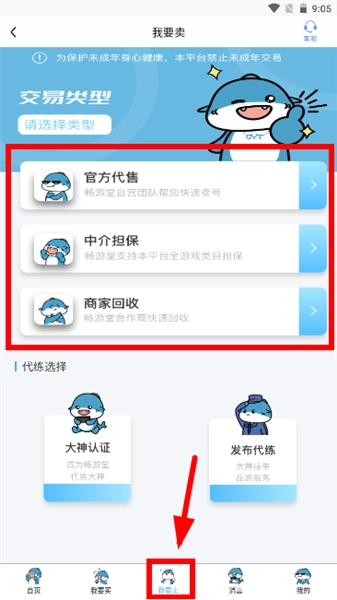 如果大家有卖号的需求,可以进入“我要出”界面,接着选择对应的交易类型,选好之后就可以等待交易流程进行了。