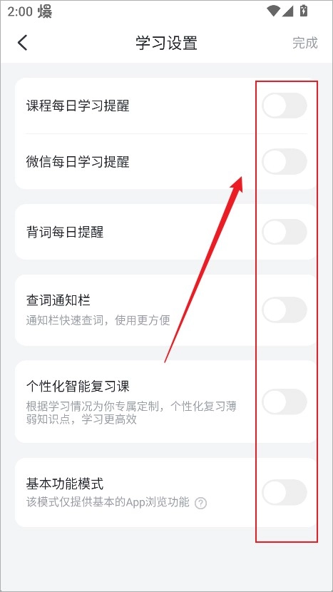 进入设置后,点击每日学习提醒选项。