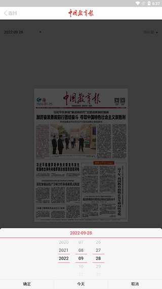 若需查阅往期电子版报纸,可点击左上角的【日期】按钮进行切换。