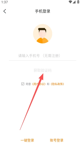 2、手机号码登录无需注册信息,填写短信验证码进入。