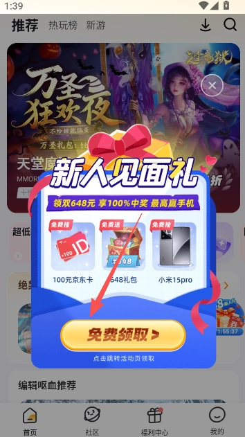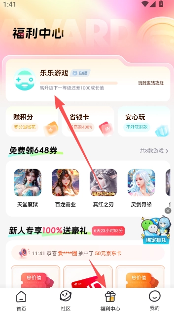 4、在首页,新用户还能领取专属福利,包括部分游戏的礼包码以及代金券等,这些福利都可在此处获取。