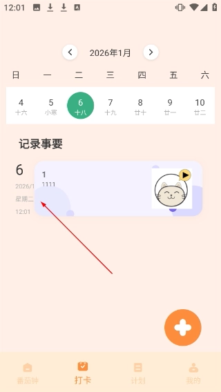 4、在【打卡】页面点击【记录事要】下的对应条目,可查看该记录的详情。
