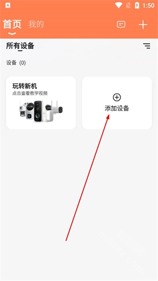 1、打开喵眼精灵应用,在首页找到“添加设备”按钮,点击该按钮进入添加设备的页面。