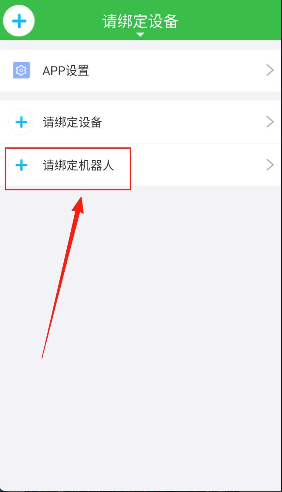 首先打开淘气贝贝,点击请绑定机器人。