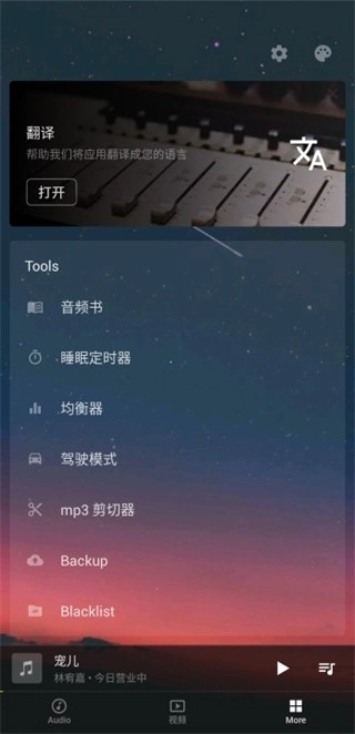 在More页面能够完成各类设置操作,像睡眠定时器和均衡器之类的功能都能在这里设置,同时也可以开启驾驶模式。