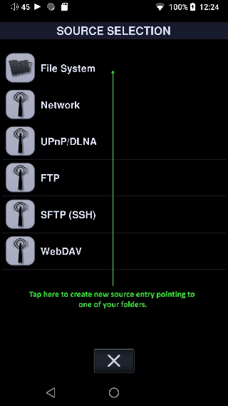 1、请从Sources区域移除已有的源条目,转而通过Google新推出的Scoped File Access(SAF)API来创建新的源条目——这是目前访问应用用户文件的唯一可行方式。具体操作步骤如下:进入Sources界面后,点击[+]按钮,选择“File System”选项,再次点击[+],随后在操作系统弹出的选择对话框里选定音乐文件夹,确认后该文件夹便会被添加至Neutron的文件系统列表中。完成这一步后,您既可以点击该条目来浏览并挑选需要扫描的文件夹,也可以直接选择已授权的文件夹并确认执行扫描操作。需要注意的是,由于Google的技术实现存在不足,SAF的访问速度比通用文件访问慢了10倍。