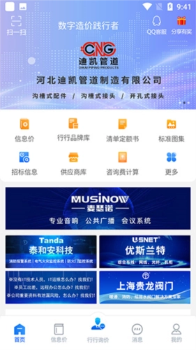五、行行造价——让你能随时随地查询信息价、标准图集以及清单定额书!对于造价人开展项目而言,它可是询价的得力助手。供应商入驻信息会精准推送,还有广告申请渠道,带来无限商机。