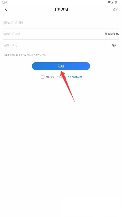 在注册页面输入手机号以获取验证码,接着设置登录密码,待所有信息填写完毕后,点击“立即注册”按钮即可完成账号创建。