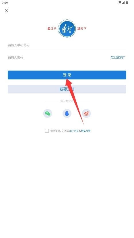 首次使用时,请先阅读服务条款与隐私政策,确认内容无误后点击同意,即可进入应用。