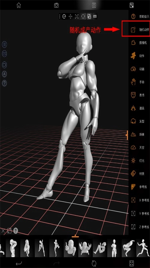 3.还有一个“随机动作”可以随机生成人偶“Pose”,作为速写练习,动态绘画练习。