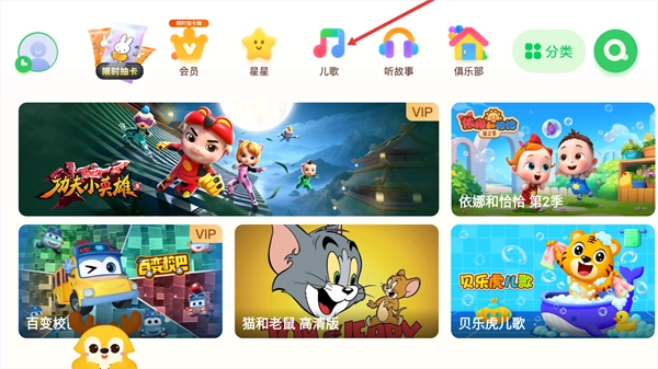 进入主页面,点击顶部的【儿歌】功能按钮。