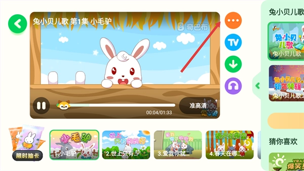 进入儿歌播放页面后,点击右上角的更多功能按钮,就能调出包含播放操作的选项菜单。