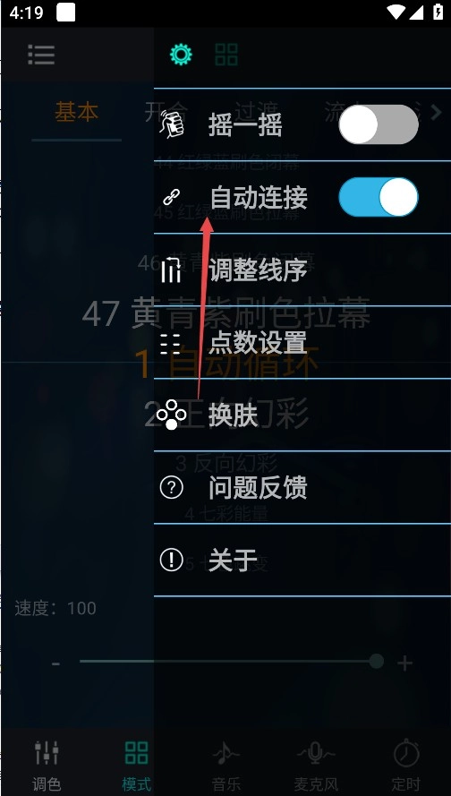 首先打开幻彩宝莲灯并完成蓝牙授权,接着点击右上角的“设置”按钮,最后开启自动连接功能。