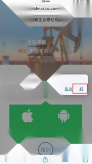步骤1:苹果手机需要先通过网址https://emp.cnpc.com.cn或扫描二维码安装“中国石油企业移动应用平台”。进入安装界面,在弹出的界面上点击安装描述证书。