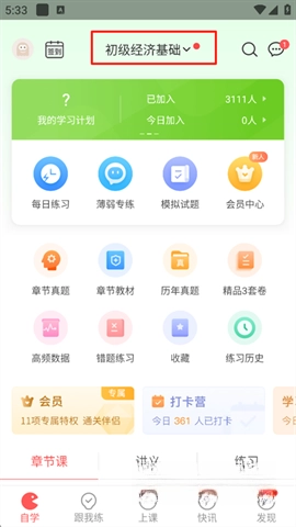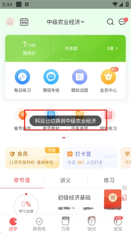 打开经济师万题库App并登录账号,接着点击界面上当前所展示的科目。