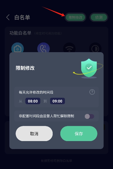 在白名单页面能够添加禅定期间允许使用的应用。