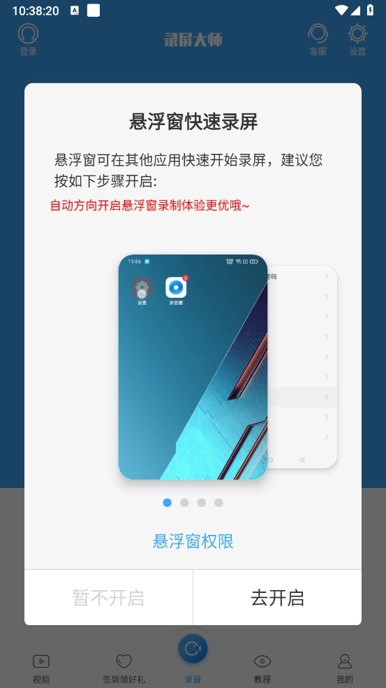 1、若您未开启录屏相关权限,可尝试"首页"-"设置"-"运行权限检测"-选择未获取的权限来点击获取