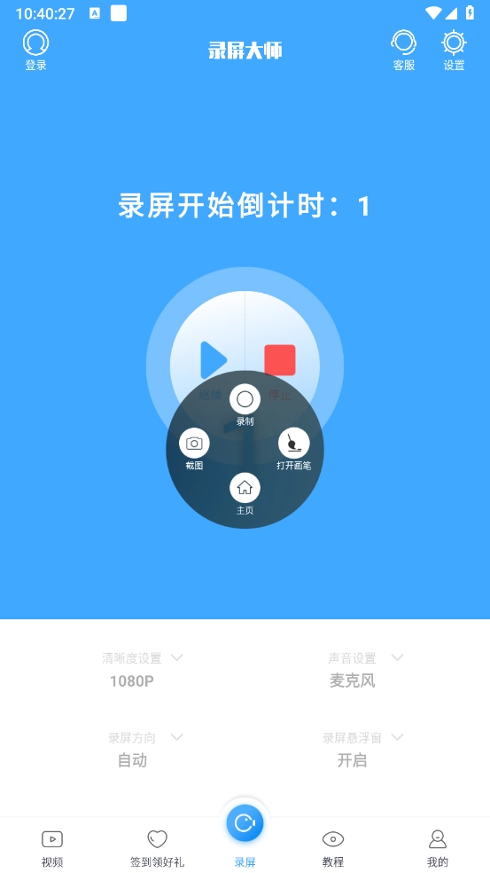 2、暂停录屏:在录屏进行时,可返回主页面,点击【暂停】图标按钮以暂停录屏。处于暂停状态时,点击【继续】图标按钮即可恢复录屏。