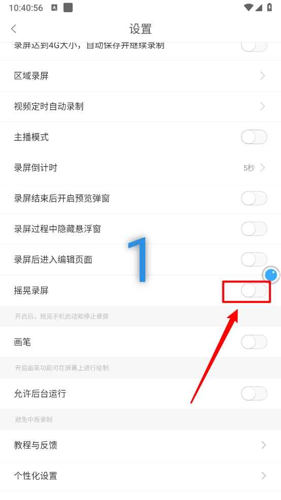 6、摇晃录屏模式:开启路径,“主界面"-"设置"-选择"开启摇晃录制”,并开启,即可通过摇晃手机来录屏。