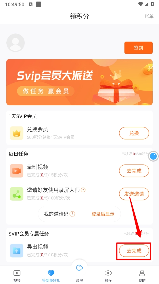 3、最后根据提示完成任务可获得免费导出视频次数。