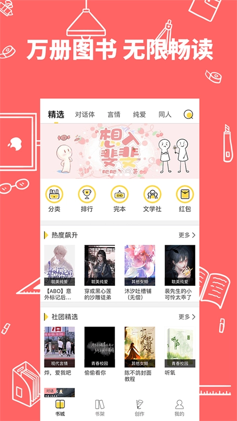 - 各类小说作品:言情、总裁、玄幻、都市等题材一应俱全,堪称免费小说大全。